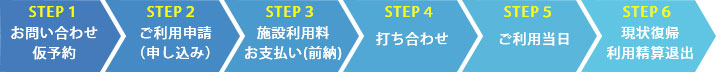 施設利用のお申し込みをいただき、事前に打ち合わせが必要なお客様は、ご利用の1ヶ月~2週間前までに担当者と打ち合わせをしてください。ご都合のよい打ち合わせ日をお問い合わせください。