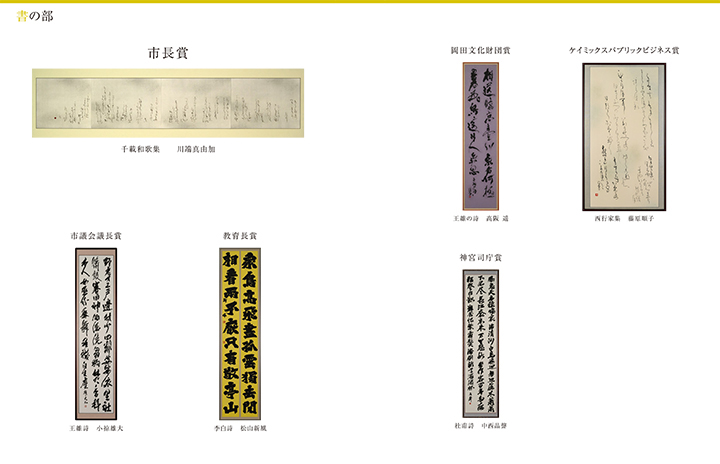 | 書の部 | 宇治橋 | 岡田鶴翠 | 308票 | 30票 |